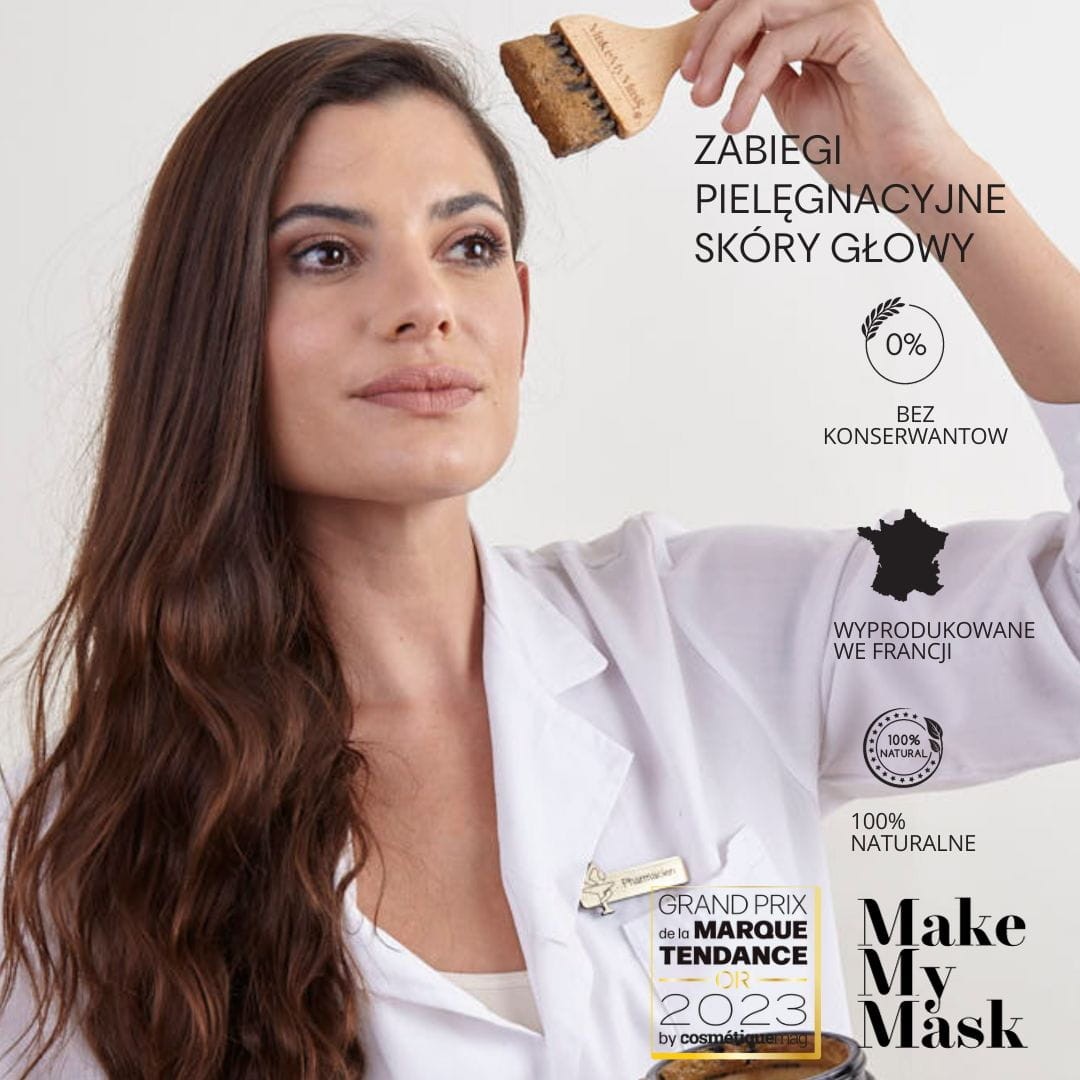 Skóra głowy również gromadzi zanieczyszczenia takie jak sebum, substancje zanieczyszczające i martwe komórki. To utrudnia wchłanianie składników aktywnych. "MakeMyMask", dzięki swojej specjalnej formule, oczyszcza i złuszcza, usuwając te przeszkody i poprawiając przepuszczalność skóry. W ten sposób składniki aktywne skupiają się efektywnie na cebulce włosowej, wzmacniając zdrowie włosów i przeciwdziałając ich wypadaniu
