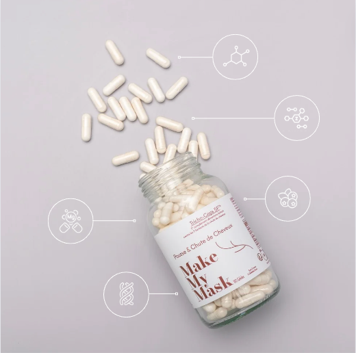 Wybrane składniki odżywcze w tym suplemencie zostały specjalnie dobrane, aby uzupełniać skuteczność naszych masek przeciw wypadaniu włosów i na włosy cienkie. Stosowanie jednocześnie terapii miejscowych i doustnych wykazało lepszą skuteczność w leczeniu wypadania włosów. Celem tej kombinacji jest dostarczenie mieszków włosowych niezbędnych składników odżywczych do wzmocnienia włosów. Dodatkowo, aplikacja miejscowa stymuluje mikrokrążenie, co sprzyja transportowi tych składników do cebulek włosowych, zapewniając bardziej efektywne działanie.