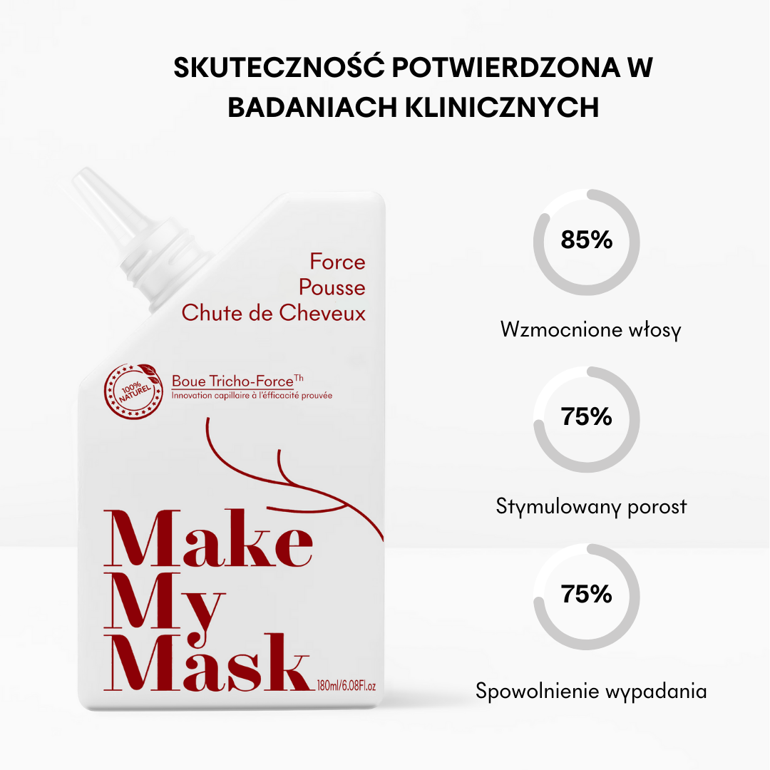 Testowana dermatologicznie, maska przeciw wypadaniu włosów Tricho-Force przynosi widoczne efekty już po pierwszym miesiącu stosowania.