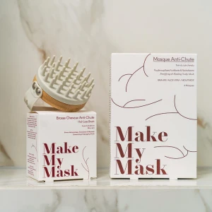 MakeMyMask to innowacyjna maseczka do włosów w 100% naturalna o potwierdzonej skuteczności, stworzona w celu zwalczania i zmniejszania wypadania włosów. Dzięki innowacyjnemu kompleksowi z proszkiem z Brahmi i olejem roślinnym z gorczycy, ta maseczka pomaga stymulować wzrost włosów jednocześnie redukując ich wypadanie. Wynikiem jest mocniejsze, zdrowsze włosy.