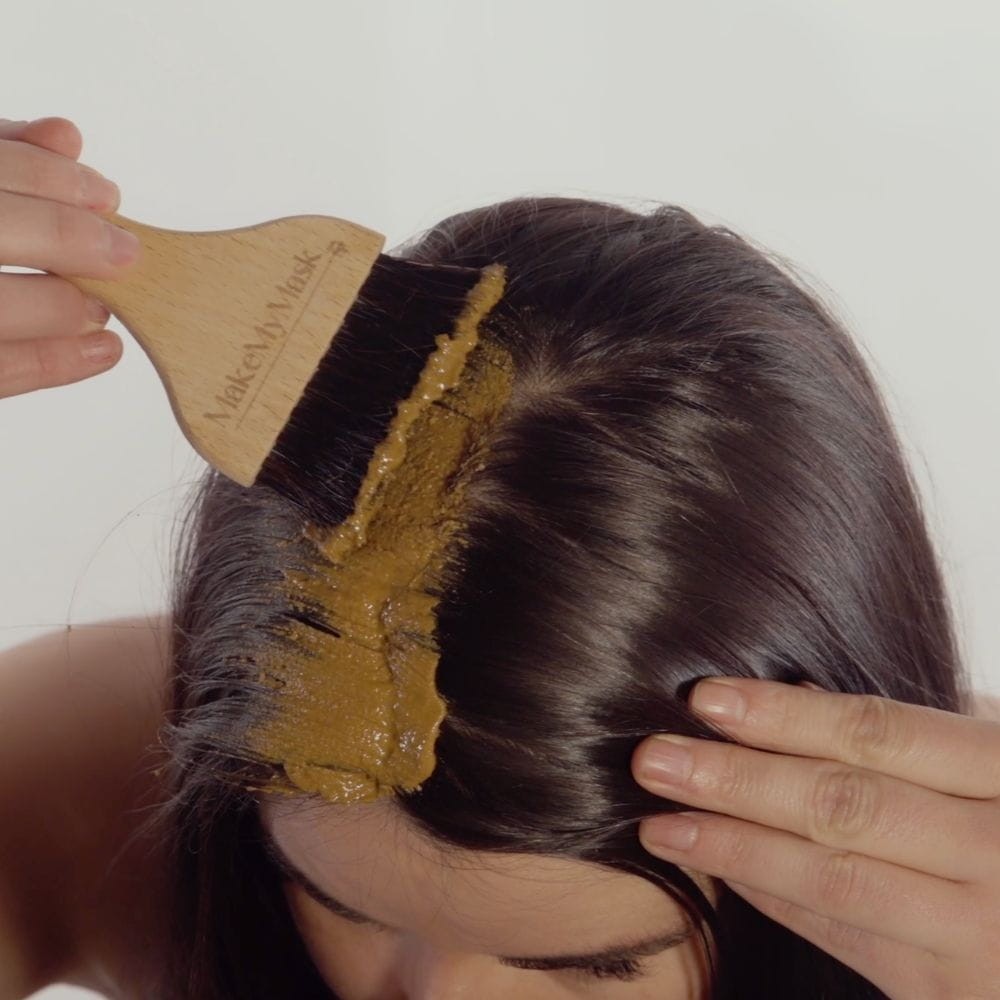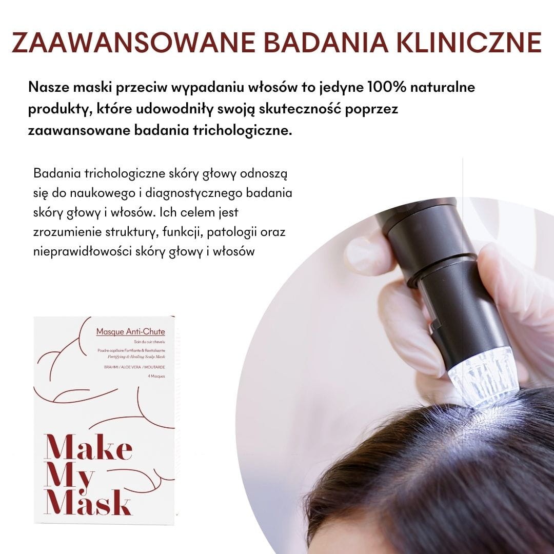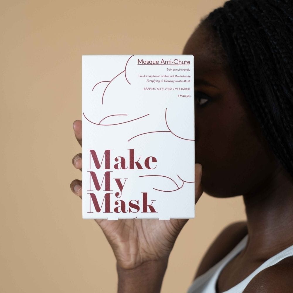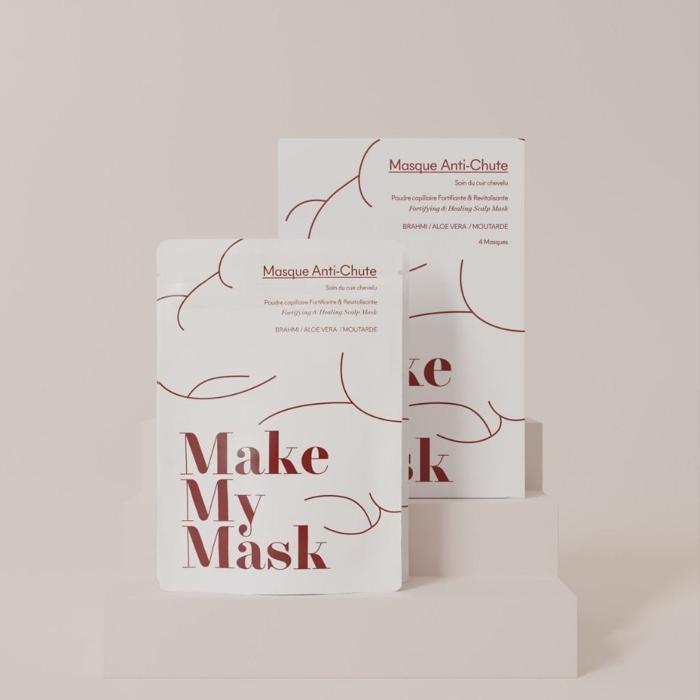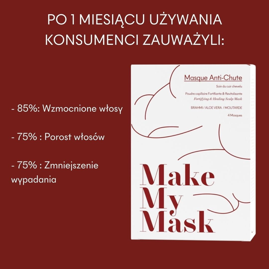 MakeMyMask to innowacyjna maseczka do skóry głowy w 100% naturalna o potwierdzonej skuteczności, stworzona w celu zwalczania i zmniejszania wypadania włosów. Dzięki innowacyjnemu kompleksowi z proszkiem z Brahmi i olejem roślinnym z gorczycy, ta maseczka pomaga stymulować wzrost włosów jednocześnie redukując ich wypadanie. Wynikiem jest mocniejsze, zdrowsze włosy.